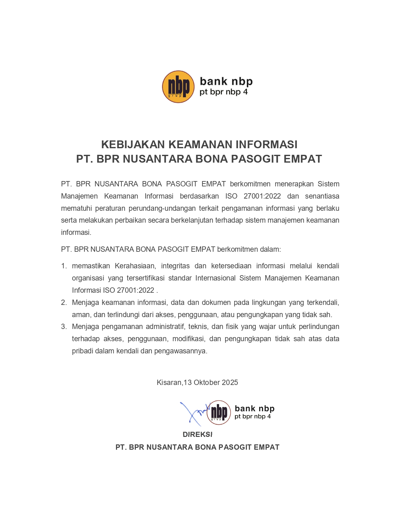 Surat Kebijakan Keamanan Informasi ISO 27001 | 2022