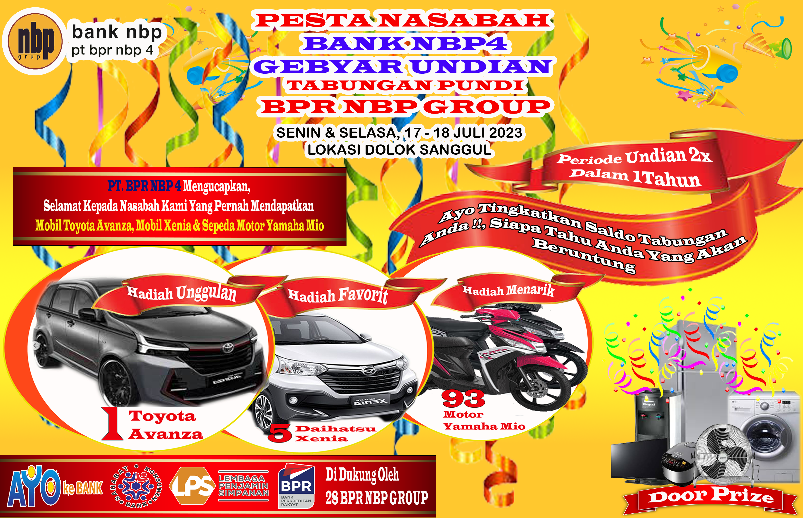 Adalah simpanan uang di BPR NBP 4 dimana pengambilannya atau penarikannya dapat dilakukan setiap saat, merupakan produk tabungan berhadiah yang menghimpun 28 BPR NBP Group yang tersebar di wilayah Jawa dan Sumatra yang pengundiannya diselenggarakan di salah satu BPR NBP Group secara bergantian.